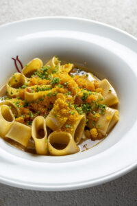 Είναι θα έλεγα μια μίξη όλων αυτών των παραγόντων. Η απαρχή σίγουρα είναι η μεγάλη μου αγάπη για την γαστρονομία και τα συναισθήματα που αντλούνται και μοιράζονται μέσω αυτής. Η έμπνευση ως αρωγός έρχεται από παντού, από τον τόπο μου και τα υπέροχα προϊόντα του, από ένα ταξίδι, μια ανάμνηση, μια μυρωδιά ή μια νέα γεύση που δοκιμάζω για πρώτη φορά. Από συζητήσεις στο Κυριακάτικο τραπέζι με τα παιδιά μου, φίλους και οικογένεια. Κάθε φορά η διαδικασία είναι διαφορετική, αλλά ο στόχος παραμένει ο ίδιος: το πιάτο που δημιουργώ να έχει κάτι να πει, να αφηγείται μια ιστορία σε αυτόν που το δοκιμάζει, αλλά και σ’ εμένα την ίδια που το δημιουργώ!