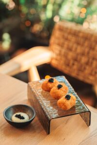 Η βραδιά ξεκίνησε με μια κροκέτα καραβίδας που θύμιζε θαλασσινό όνειρο. Ελαφριά, τραγανή, γεμάτη νοστιμιά, συνδυαζόταν υπέροχα με τη βελούδινη κρέμα αγιολί και την αλμυρή πινελιά του χαβιαριού. Ο λευκός ταραμάς με αυγοτάραχο αποκάλυψε μια απρόσμενη ισορροπία – αρμονία ανάμεσα στην ένταση και τη λεπτότητα, με το αρωματικό λάδι να προσφέρει ένα σχεδόν συγκινητικό βάθος. Κι έπειτα, η σαλάτα με ψητές γαρίδες, αβοκάντο και μεσκλάν από πράσινα φύλλα· μια σύνθεση φρεσκάδας και κομψότητας, όπου το καβουρδισμένο αμύγδαλο προσθέτει εκείνο το παιχνίδισμα υφής που κάνει κάθε μπουκιά μοναδική.