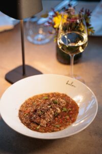 Το κριθαράκι με καραβίδα και φρέσκια τρούφα στάθηκε ως το αποκορύφωμα της γαστρονομικής έμπνευσης – μια συνάντηση θαλάσσιας απαλότητας και γήινου αρώματος. Κάθε κουταλιά, μια υπόσχεση απόλαυσης, μια αποκάλυψη της αρμονίας που μπορεί να υπάρξει ανάμεσα σε δύο φαινομενικά αντίθετους κόσμους. Η μοσχαρίσια ταλιάτα ακολούθησε με τη δύναμη της απλότητας. Μαλακή, σωστά ψημένη, με καπνιστό πουρέ πατάτας και μπροκολίνι, παρέδιδε ένα μάθημα ισορροπίας – πώς η φωτιά και η γη, η ένταση και η ηρεμία, μπορούν να συνυπάρξουν στο ίδιο πιάτο.
