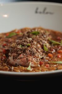 Σε μια βραδιά που έμοιαζε περισσότερο με τελετουργία παρά με απλό δείπνο, το Belon στην Κηφισιά μας υποδέχθηκε με μια ατμόσφαιρα που αγγίζει τα όρια της τέχνης. Εδώ, η γεύση αποκτά ψυχή, η παρουσίαση μετατρέπεται σε έκφραση και κάθε λεπτομέρεια σε υπόσχεση ότι το φαγητό μπορεί να γίνει συναίσθημα. Το μενού της βραδιάς ήταν ένα ταξίδι μέσα από αρώματα, υφές και συνδυασμούς που ξεπερνούν τη λογική και αγγίζουν το αισθητικό ένστικτο – μια ωδή στη λεπτότητα και στη μαγεία της δημιουργίας.