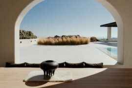 Αν και οι χώροι είναι εξαιρετικά πολυτελείς, είναι τόσο ζεστοί που σε προσκαλούν απλά να χαλαρώσεις και να απολαύσεις τη θέα της θάλασσας. Κυρίαρχα χρώματα είναι το λευκό και το καφέ του ξύλου, με διάσπαρτες πινελιές ζωηρών χρωμάτων.